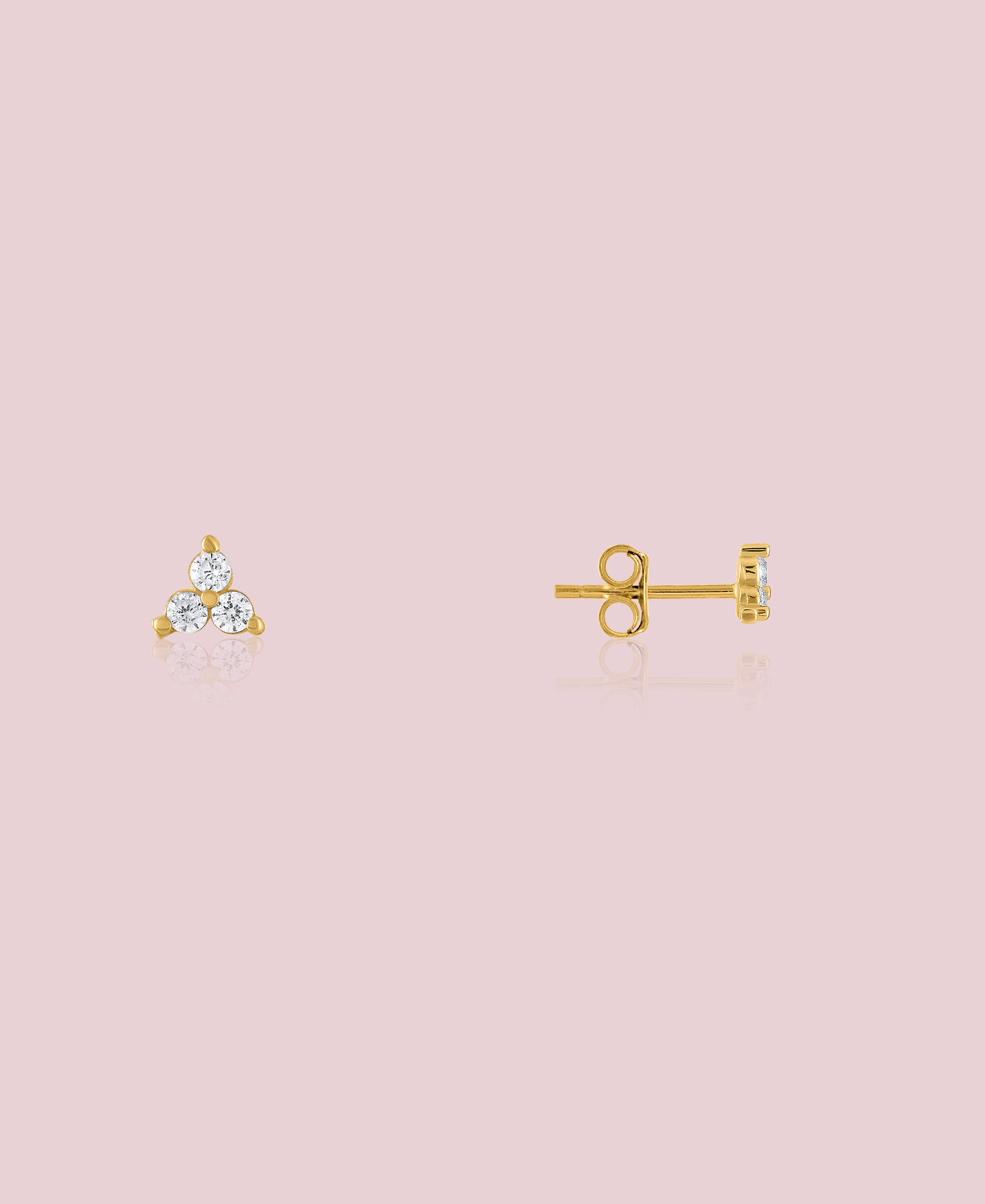 Discover refined sophistication with the Ifuru Studs from our Dainty Collection. These delicate triangular studs feature a charming three-stoned flower design that adds a touch of elegance to your everyday look. Small in size but impactful in presence, the Ifuru Studs offer a subtle luster that complements any outfit with graceful charm.
