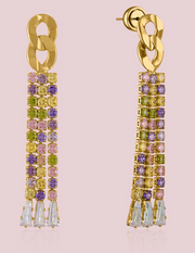 Say hello to The Regnbue earrings these crystal drop earrings are the definition of glamour and dazzle. These lookers feature a host of multicolored stones that shines bright like the brightest star in the sky. Eye-catching and chic for any celebratory occasion. You can say this is a great staple to add to your glam collection.