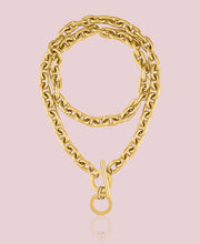 This double layered chain, has a double circle detailing, finished with brushed 18k plated gold. The HYGGE is a chunky necklace that goes perfectly with your oma bodysuit or your LBD!