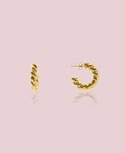 Are vintage inspired twisted hoops, with a shiny finish. Pair them with our Lucy hoops for a nice stack.